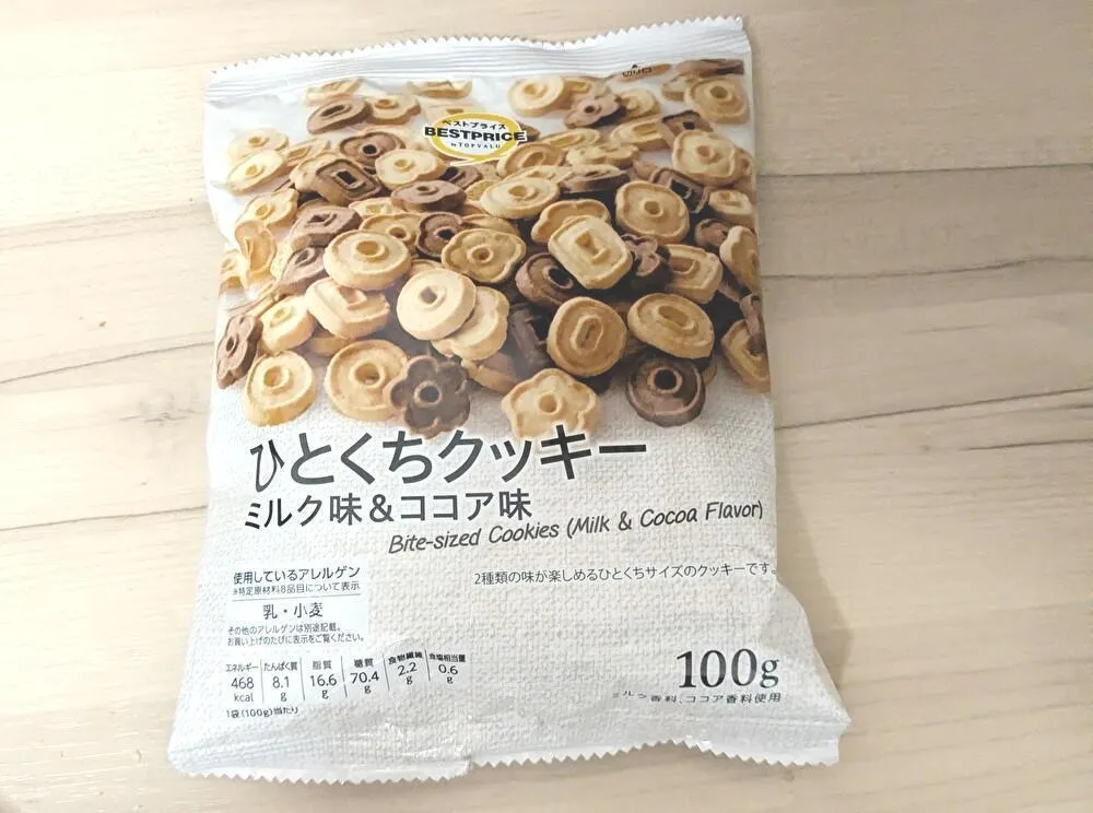 Bánh quy giòn tan, bạn có thể thưởng thức vị ngọt dịu của sữa và vị đắng nhẹ của ca cao. Kích thước nhỏ gọn, dễ ăn, rất tiện lợi khi đói nhẹ hoặc khi di chuyển bằng ô tô. Với khoảng 80 chiếc, đây là loại bánh quy có giá trị tốt nhất, và giá chỉ hơn 100 yên là quá hời. Hương vị sữa và ca cao rất dễ kết hợp với cà phê đậm đà.