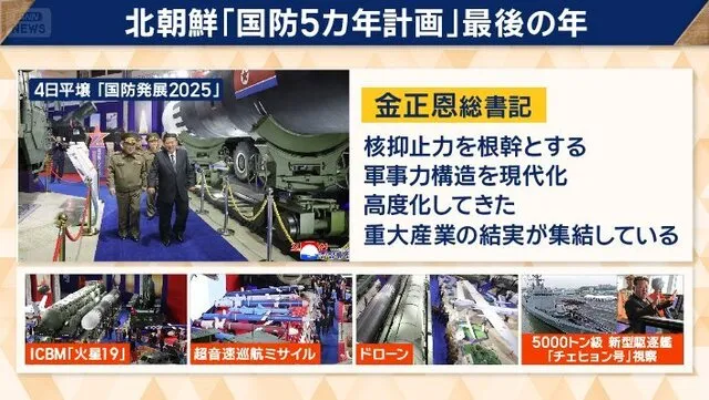 Năm nay là năm cuối cùng của kế hoạch 5 năm quốc phòng của Bắc Triều Tiên. Vào ngày 4, họ đã tổ chức một triển lãm vũ khí mang tên "Phát triển Quốc phòng 2025". Tổng Bí thư Kim Jong Un đã nói về triển lãm này: "Đây là sự hội tụ những thành quả của các ngành công nghiệp chủ chốt đã hiện đại hóa và nâng cao cấu trúc lực lượng quân sự dựa trên khả năng răn đe hạt nhân".