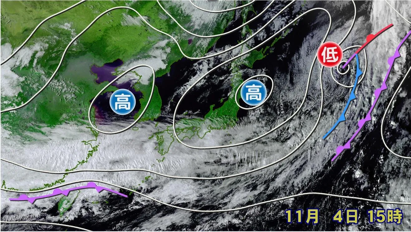 Ngày 4 tháng 11 năm 2025, một vùng áp cao di động lớn đã di chuyển qua quần đảo Nhật Bản, khiến nhiều nơi trở nên se lạnh do hiện tượng bức xạ nhiệt vào sáng sớm (Hình 1).