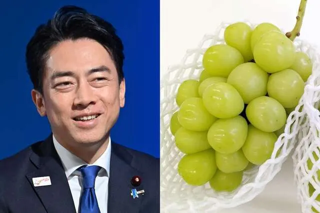 Bộ trưởng Nông Lâm Thủy sản Koizumi Shinjiro và nho Shine Muscat