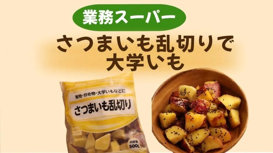 "Khoai lang cắt khúc đông lạnh" là sản phẩm tiện lợi nên có trong tủ đông. Bạn có thể nhanh chóng chế biến món này ngay cả vào những ngày bận rộn, mang đến hương vị mùa thu. Hãy thử làm nhé!