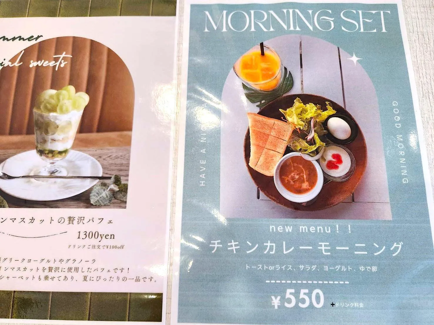 Ngoài ra còn có bữa sáng cà ri gà, có thể chọn dùng với bánh mì nướng hoặc cơm. Tất cả đều trông rất ngon, nhưng lần này tôi đã gọi set A với bánh mì của ngày, chỉ tính phí đồ uống.