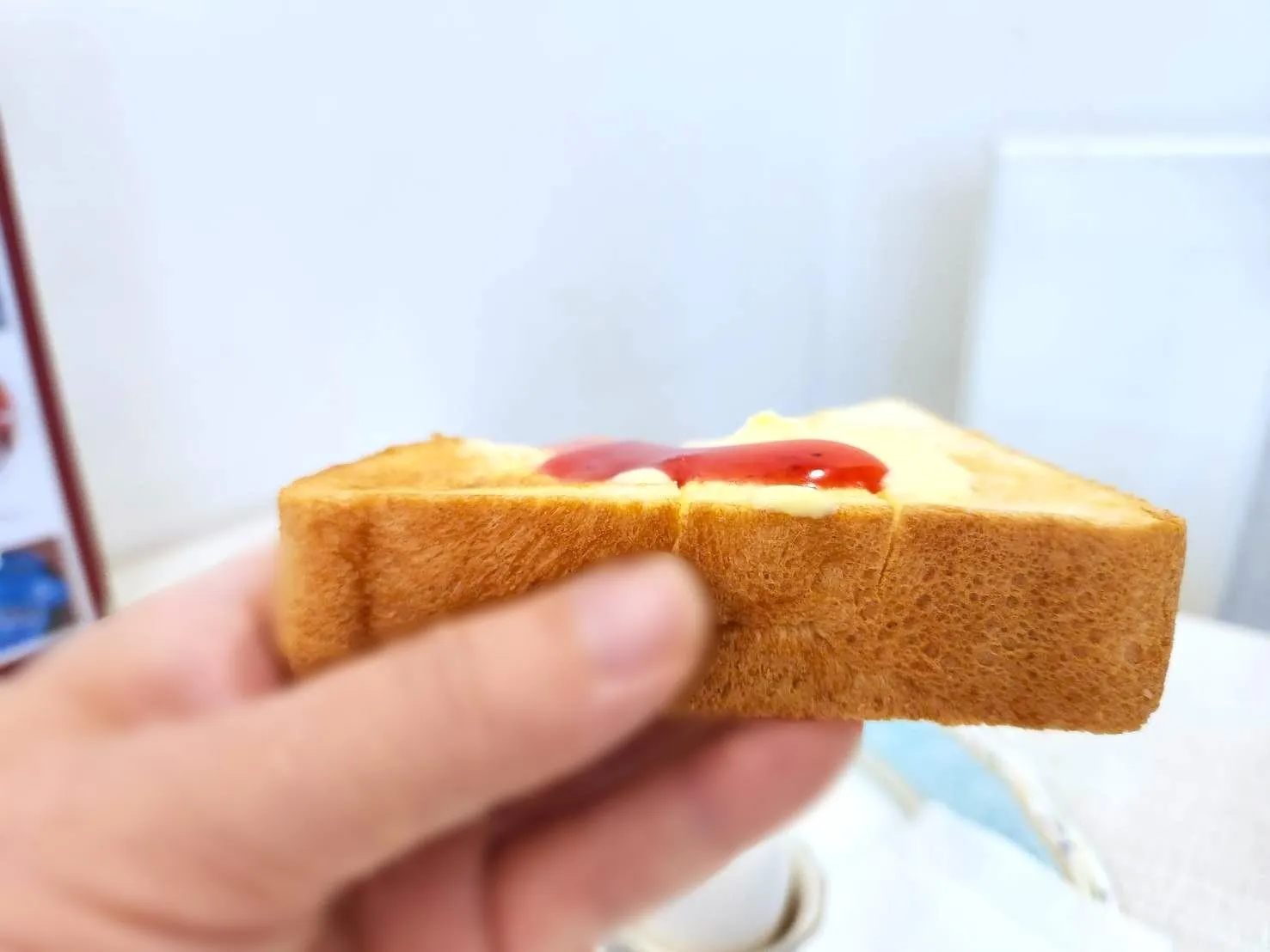 Bữa sáng bao gồm bánh mì nướng, salad, trứng luộc và tráng miệng (sữa chua). Vì mứt được phục vụ riêng, tôi đã cho mứt vào trà, thưởng thức theo phong cách trà Nga để tận hưởng cảm giác như đang ở khu nghỉ dưỡng.