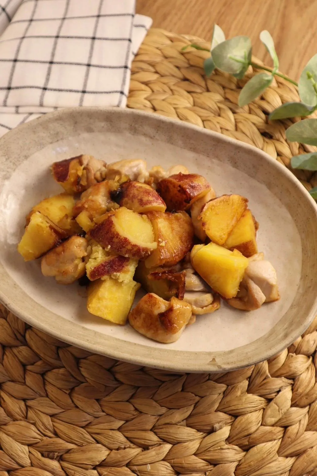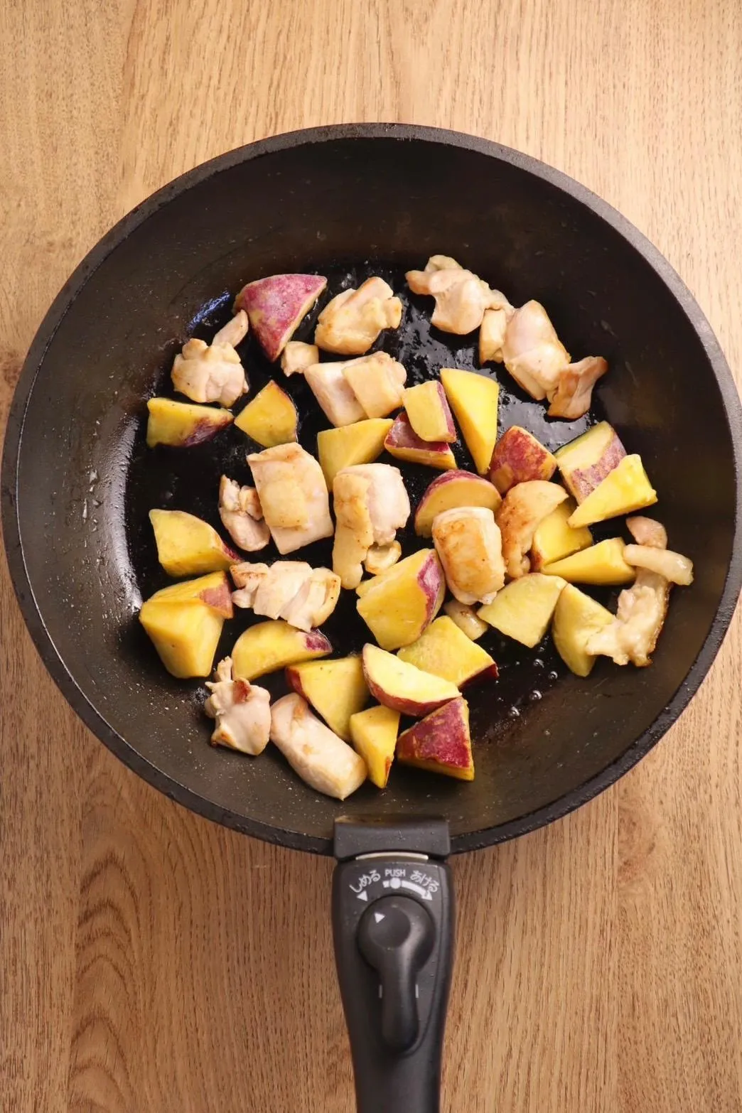 Lần này, tôi đã thử dùng "khoai lang cắt hạt lựu" này để làm món "Gà đùi kho teriyaki" với hương vị bơ thơm lừng kích thích vị giác. Sau đây là công thức.