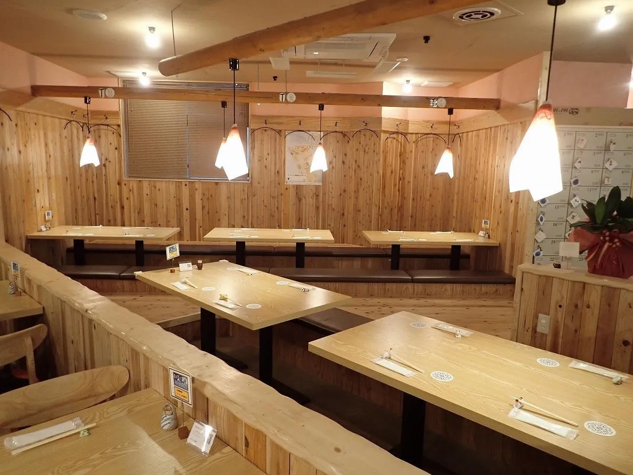 Đây là một quán izakaya điển hình, với khoảng 40 chỗ ngồi tại bàn.