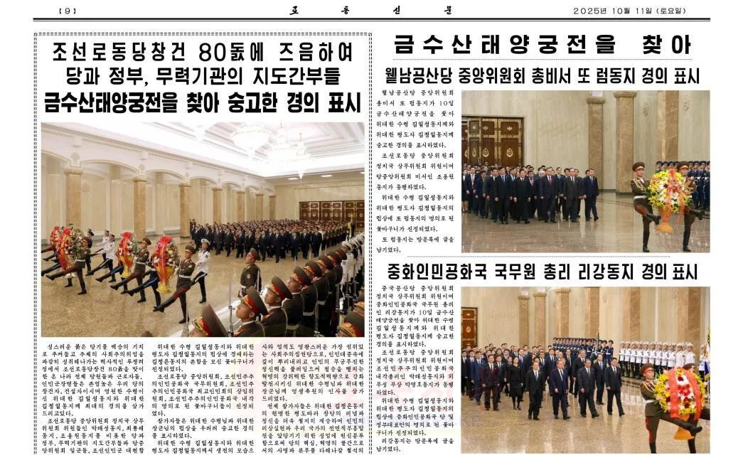 Trích từ trang nhất báo Rodong Sinmun ngày 11 tháng 10, đưa tin về việc các nhà lãnh đạo quốc gia được mời đến viếng Cung điện Mặt trời Kumsusan.