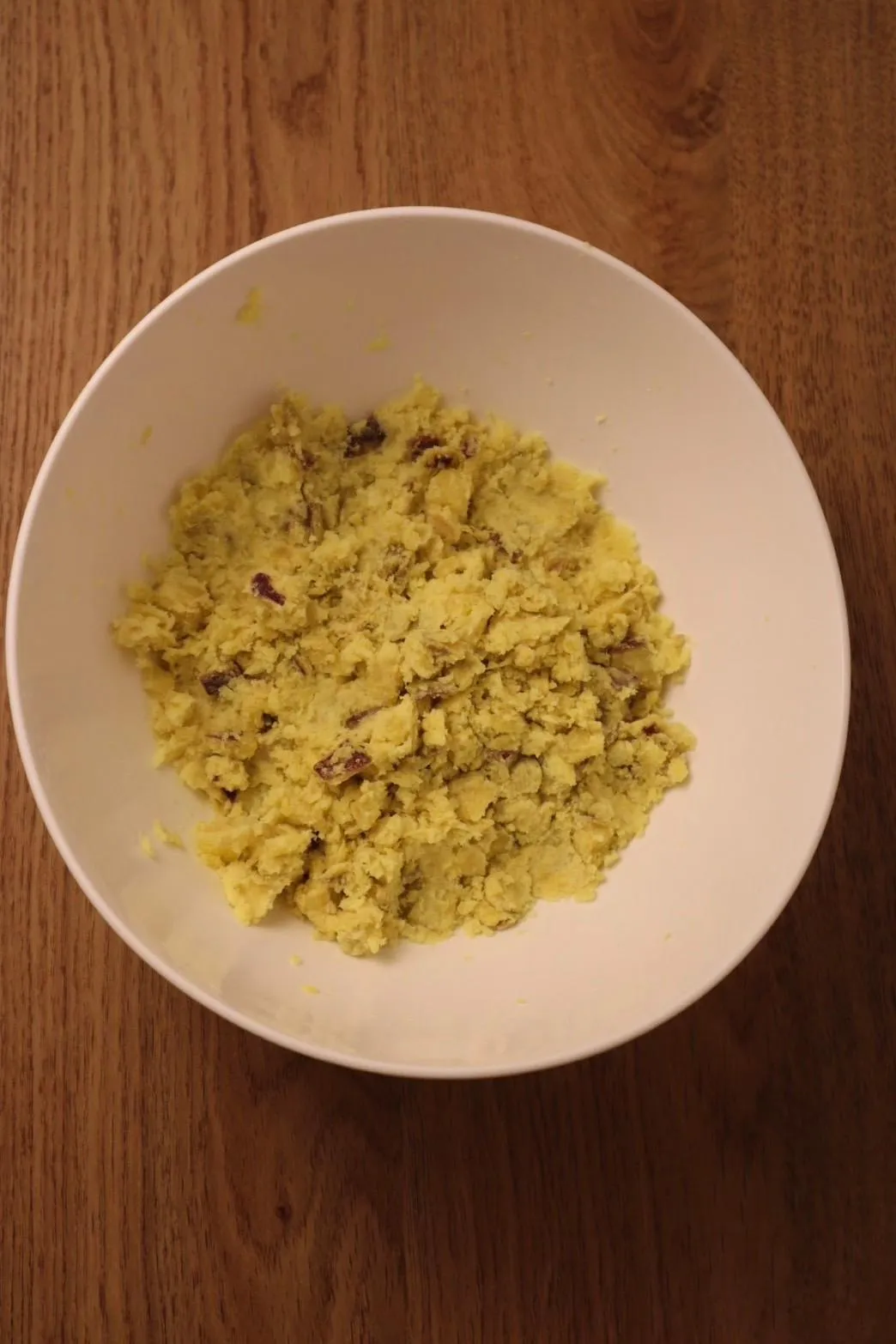 ② Dùng nĩa hoặc dụng cụ nghiền để nghiền khoai cho đến khi mịn.