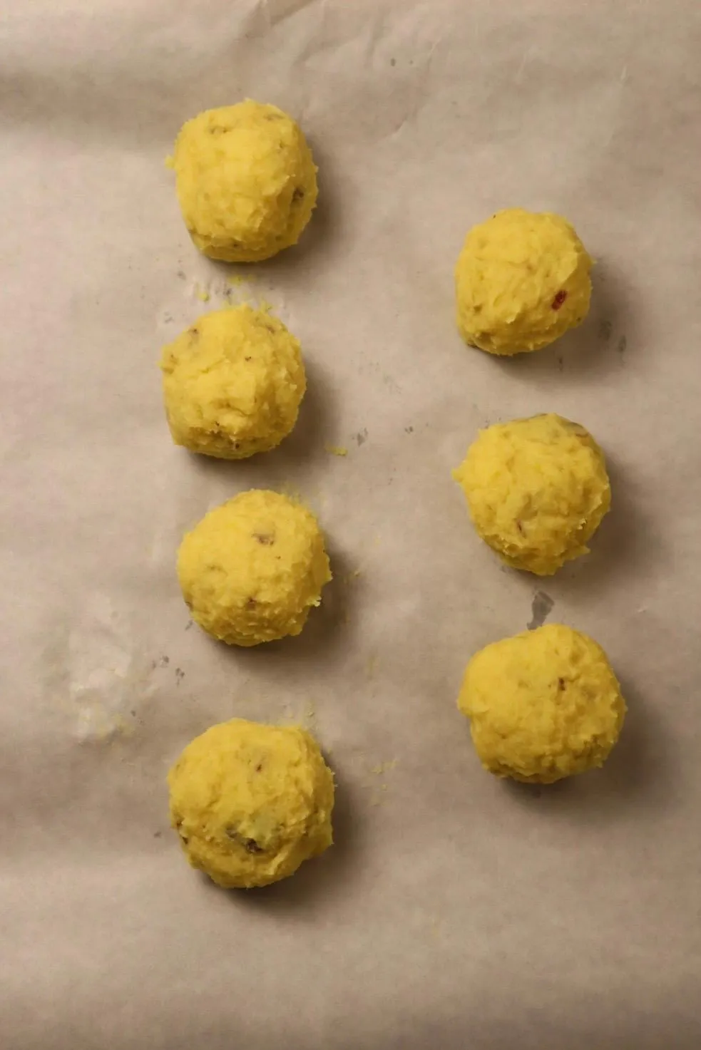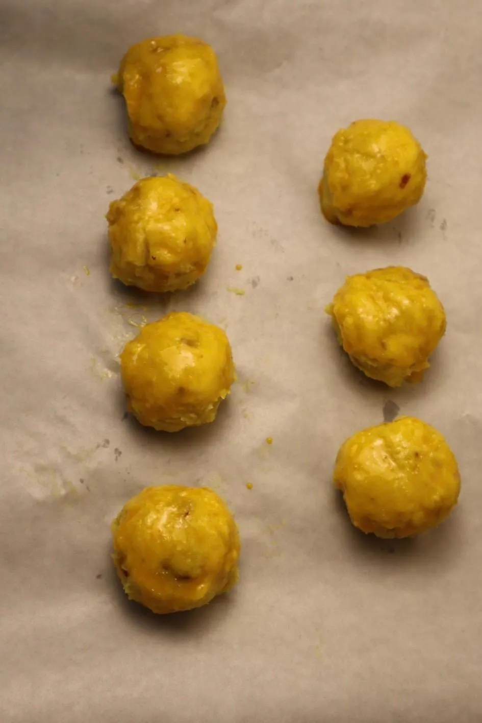 ④ Chia hỗn hợp thành 7 phần bằng nhau, vo tròn và nắn cho bề mặt mịn màng.