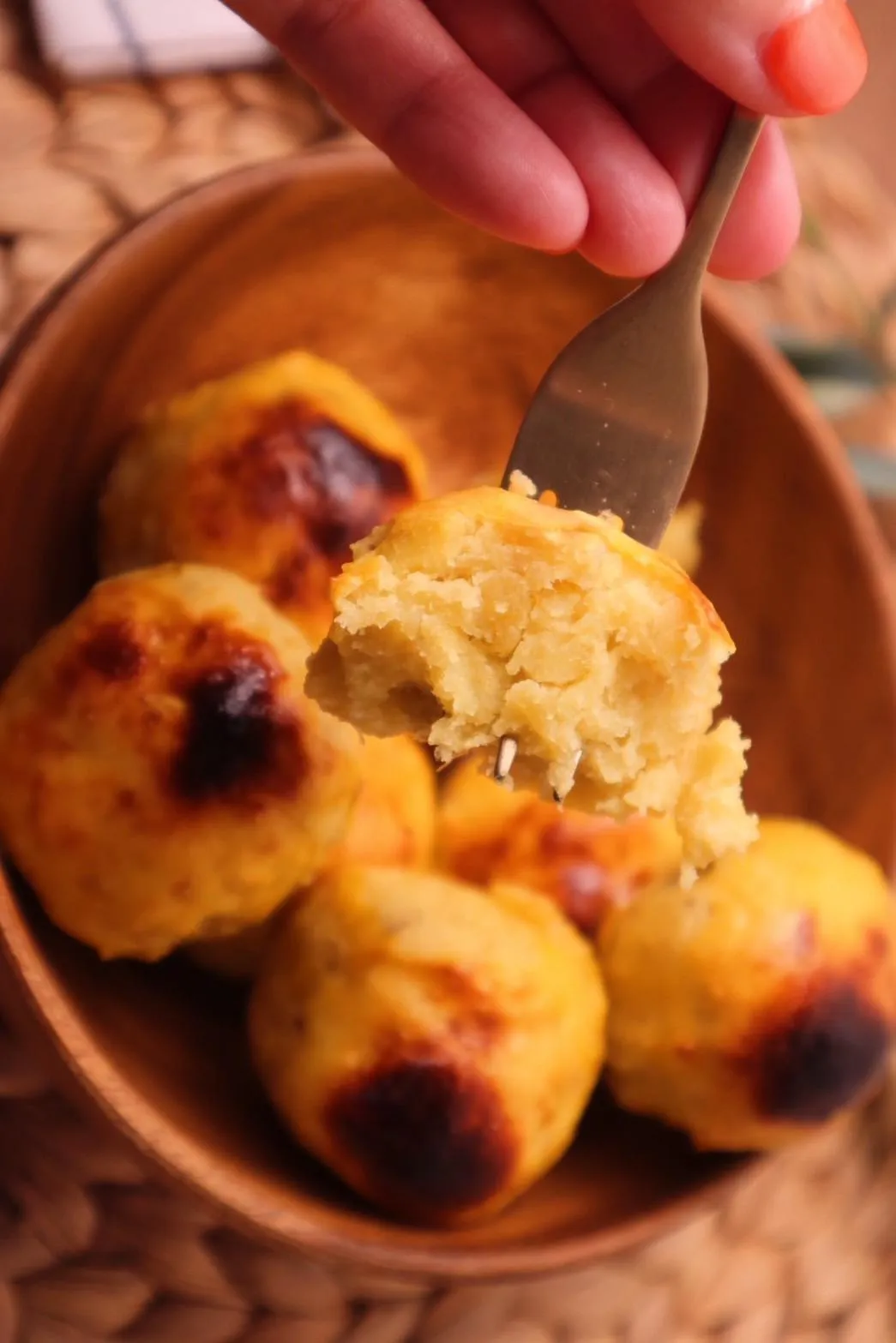 Dù có thêm đường, bạn vẫn cảm nhận rõ vị ngọt tự nhiên của khoai lang. Bánh có độ mịn màng, vị ngọt dịu lan tỏa khắp khoang miệng.