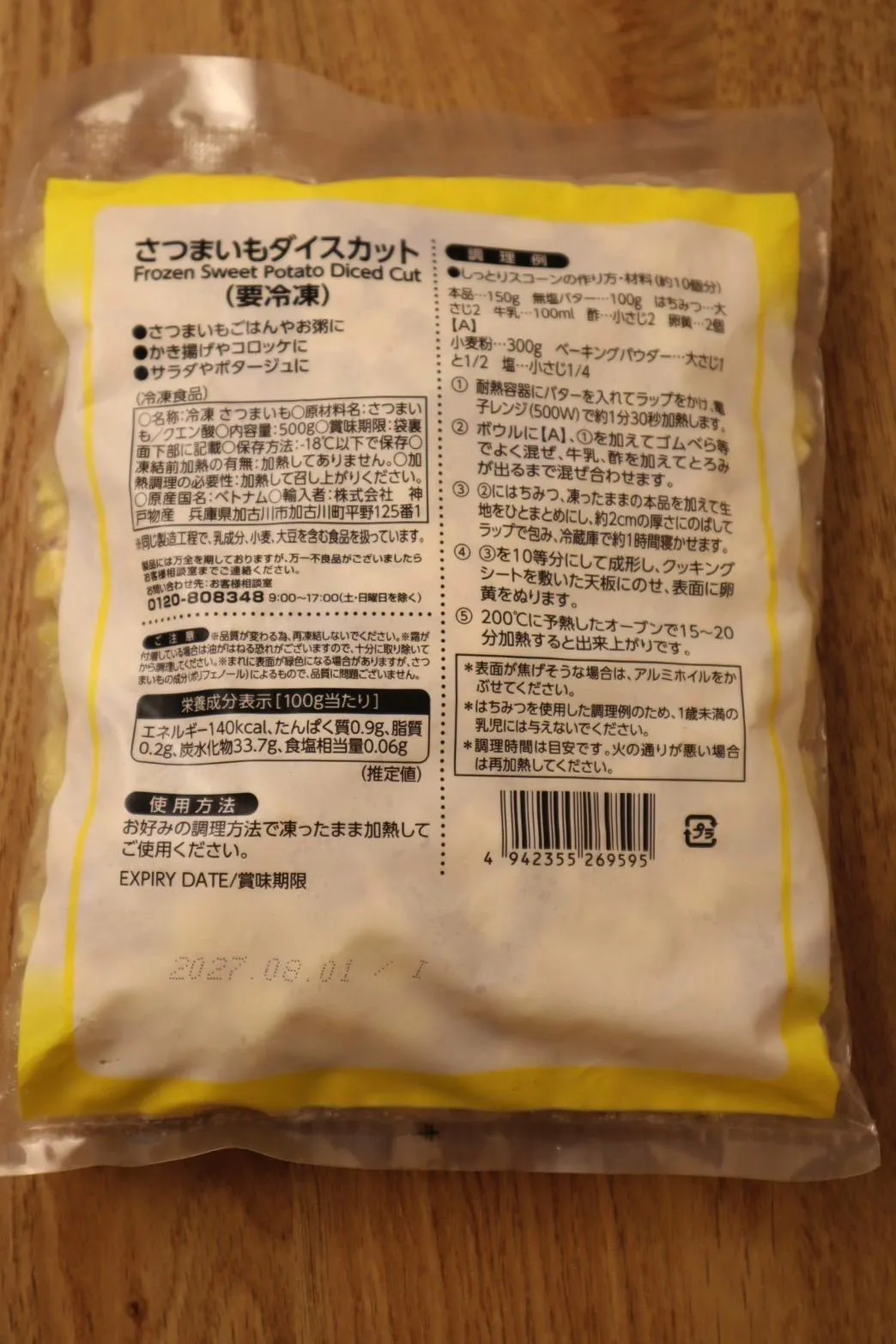 Những miếng khoai lang cắt nhỏ, còn vỏ, trông rất tự nhiên. Màu vàng tươi ấn tượng đến mức khó tin đây là sản phẩm đông lạnh, và điều tuyệt vời nhất là không cần bất kỳ công đoạn sơ chế nào.
