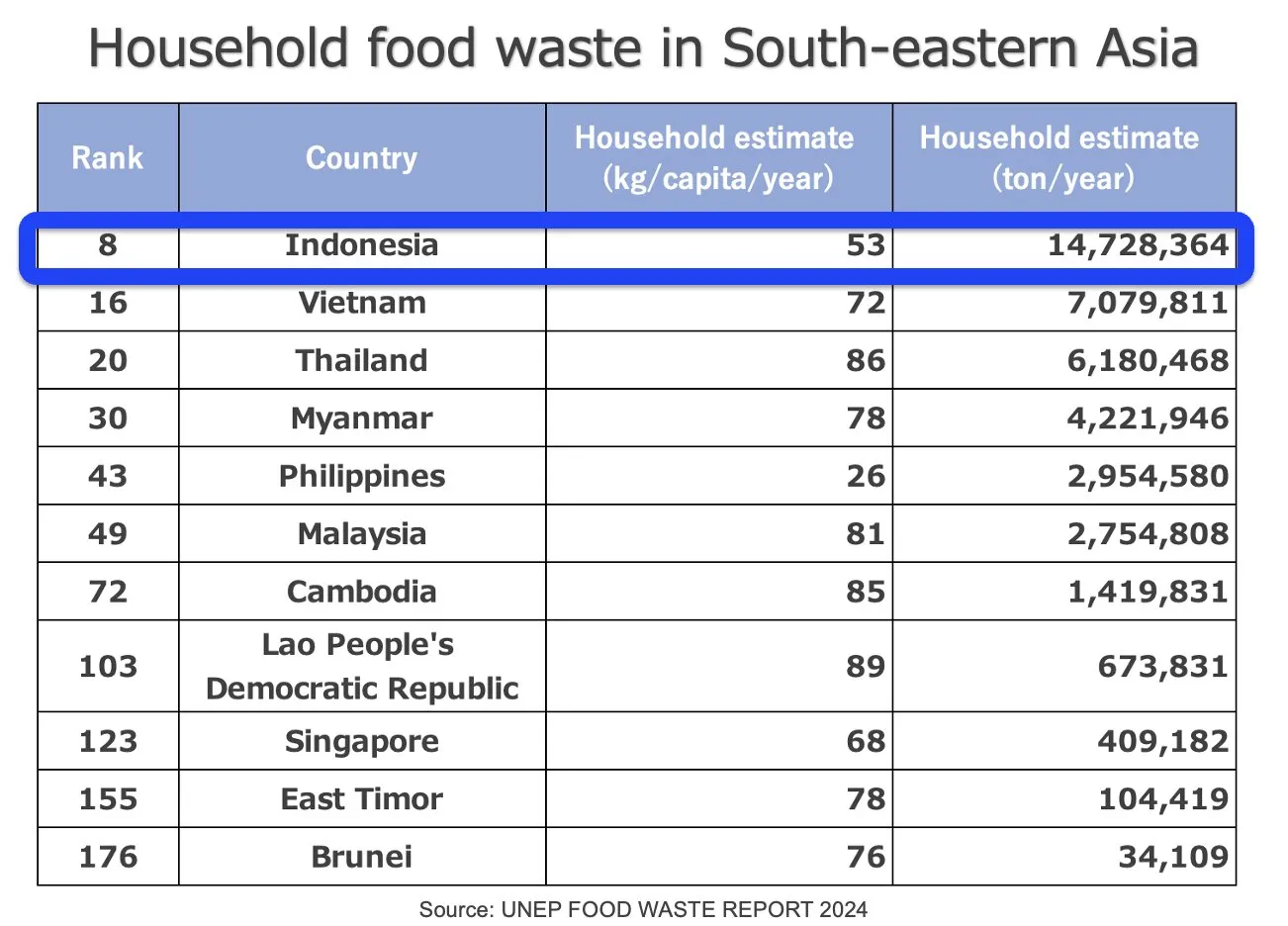 Lượng lãng phí thực phẩm của Indonesia đứng thứ 8 trên thế giới.