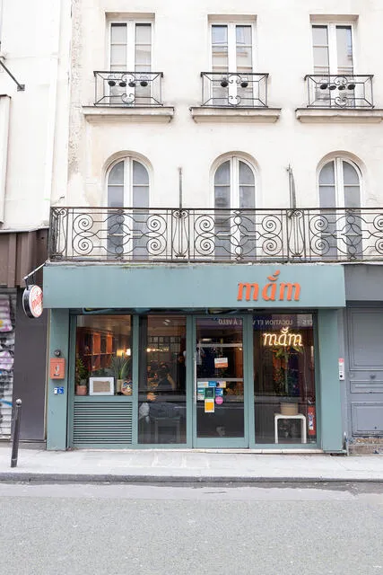 Bức tường ngoại thất màu xanh nhạt tạo ấn tượng hiện đại. Dù chỉ là một nhà hàng nhỏ khoảng 25 chỗ ngồi, nơi đây vẫn nổi tiếng vì thực khách có thể thưởng thức các món ăn Việt Nam chuẩn vị.