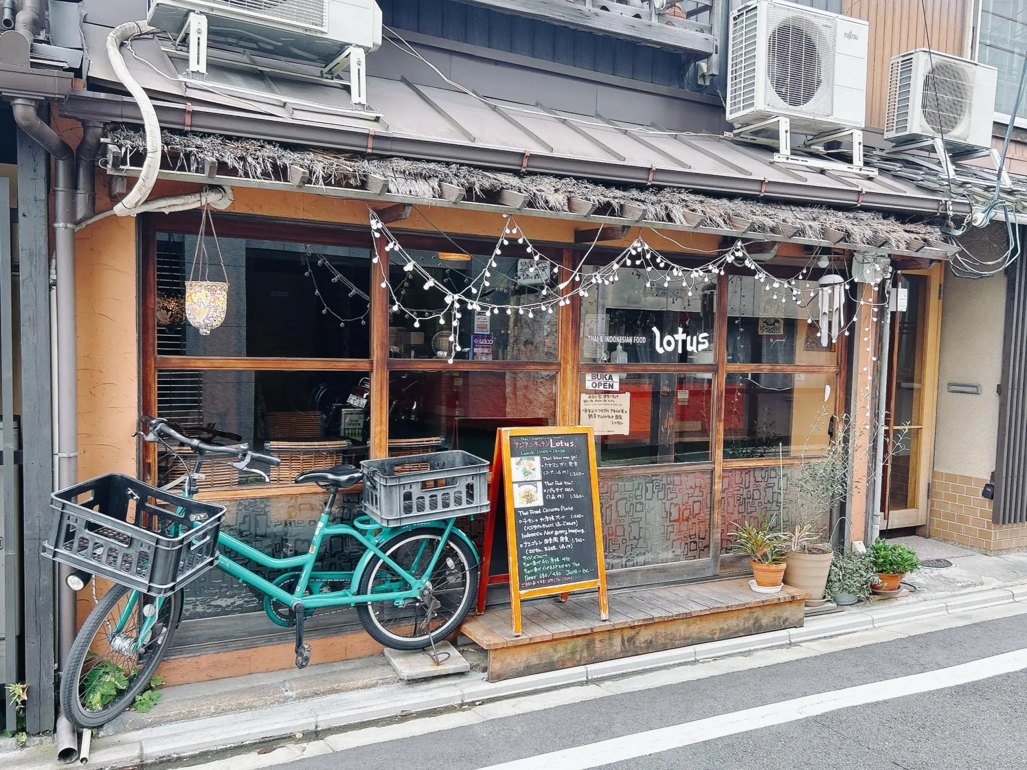 Cách ga Sanjo Keihan của Tuyến tàu điện ngầm Tozai, Kyoto khoảng 6 phút đi bộ là "Asian Kitchen Lotus", nằm yên bình trên đường Niomon. Đây là một cửa hàng được cải tạo từ một machiya (nhà phố truyền thống Kyoto) cũ, với lá cọ và bảng đen menu viết tay, tạo không khí như một quán ăn đường phố Đông Nam Á.