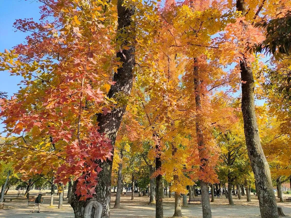 Thời tiết ban ngày dễ chịu tiếp tục, nhưng vào buổi sáng và tối, không khí se lạnh, báo hiệu mùa đông đang đến. Cây cối trong công viên cũng đang chuyển màu sâu hơn theo sự thay đổi này, và hiện đang vào mùa lá đỏ đẹp nhất.