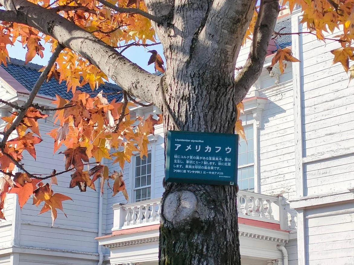 Trước Câu lạc bộ Công viên Tổng hợp (cũ là Okayama Kaikosha), cây "American Sweetgum" (Phong Mỹ) rực rỡ sắc màu, tạo nên sự tương phản đẹp mắt với kiến trúc mang phong cách Taisho Roman. Khung cảnh hòa quyện giữa công trình lịch sử và lá đỏ đã trở thành điểm chụp ảnh được nhiều du khách yêu thích.