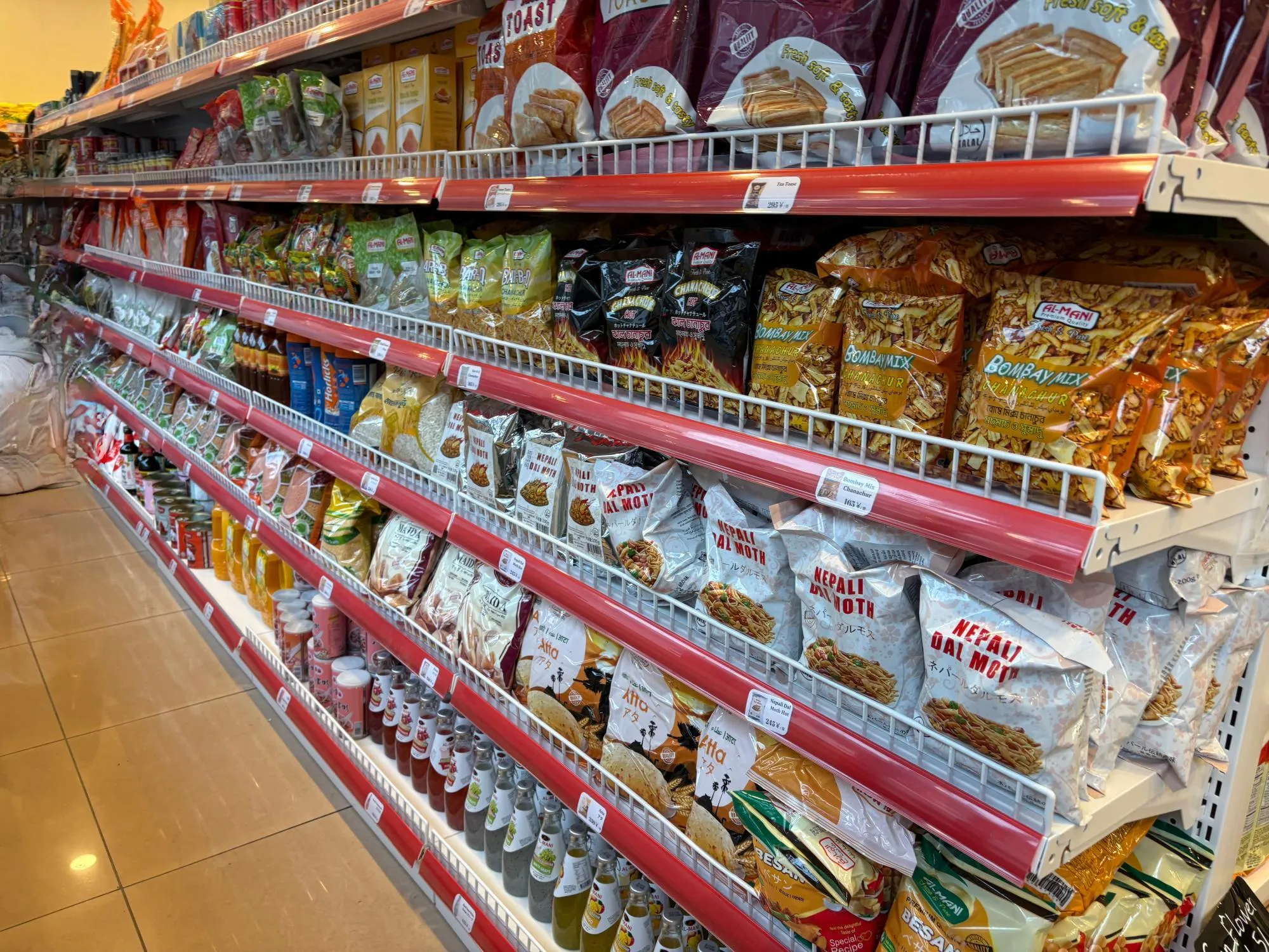 Trước cửa hàng còn có rau củ và trái cây nội địa, cùng nhiều loại thực phẩm khác không chỉ của Việt Nam, với đủ loại bao bì lạ mắt và thú vị!