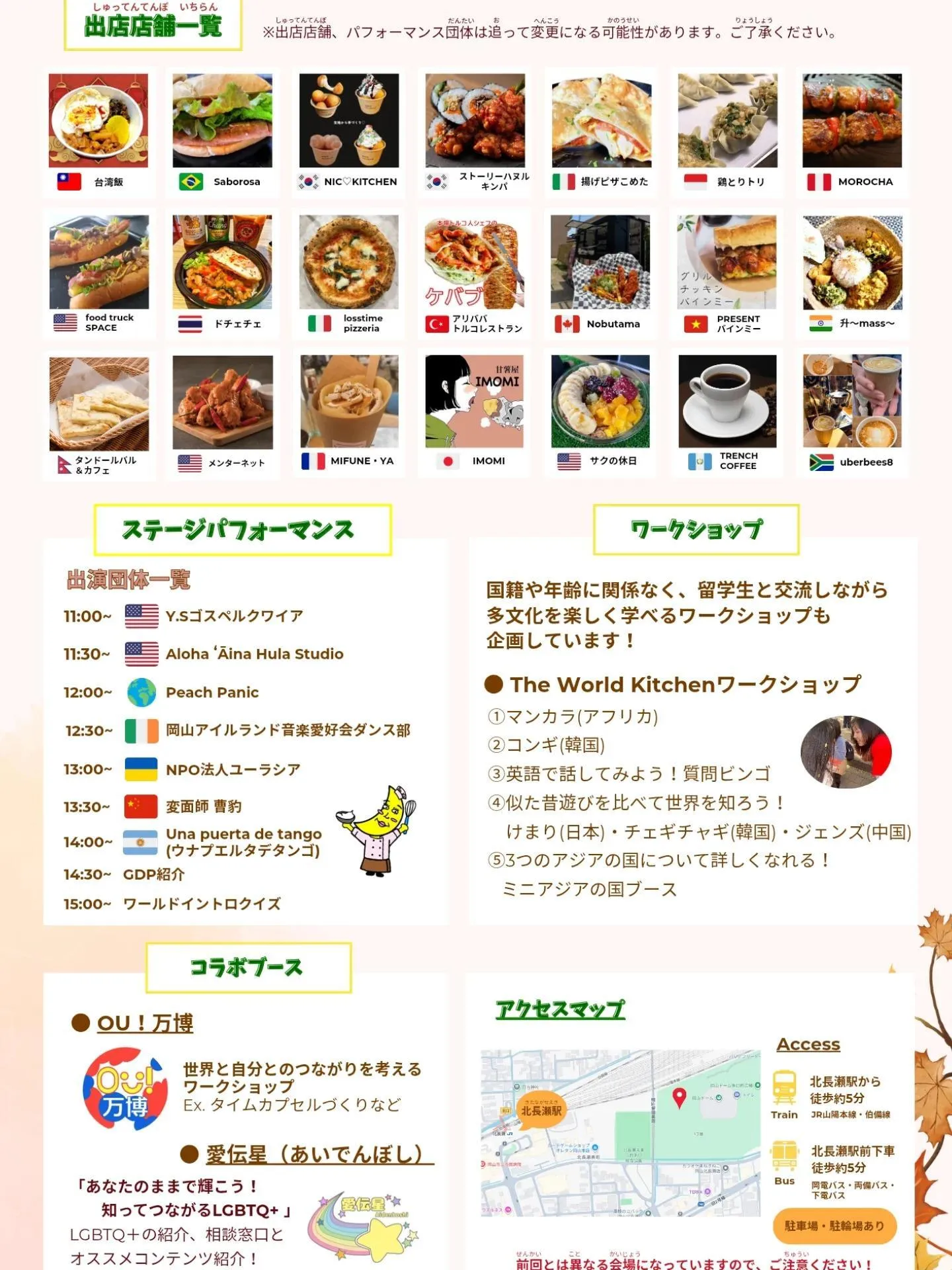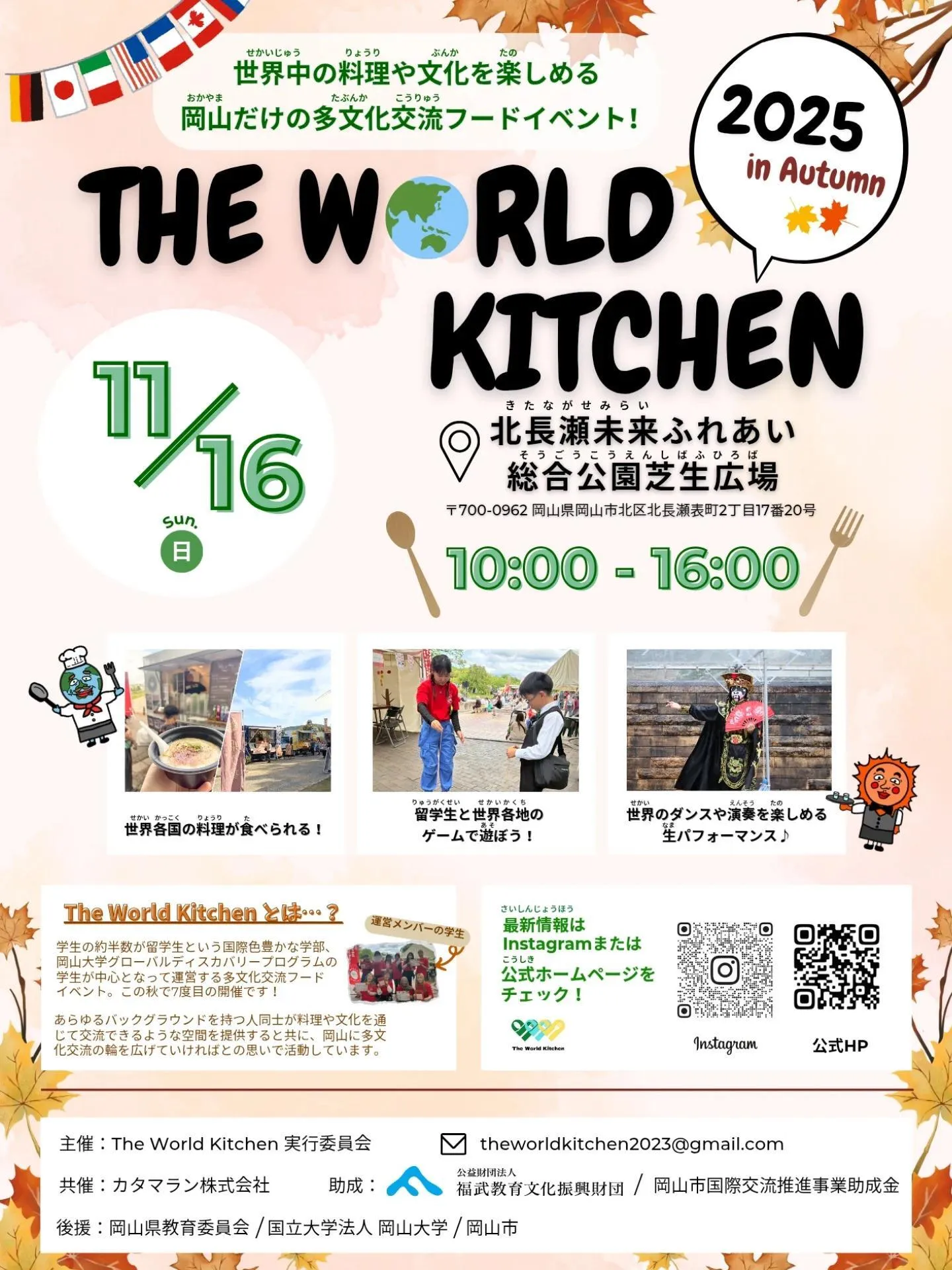 Vào Chủ Nhật, ngày 16 tháng 11, sự kiện "The World Kitchen 2025 in Autumn" sẽ được tổ chức tại bãi cỏ của Công viên Tổng hợp Kitaganase Mirai Fureai.