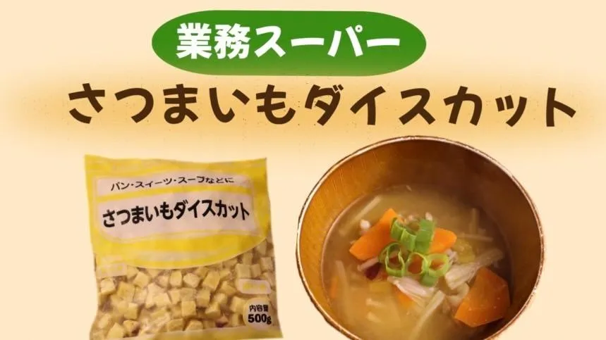 "Khoai lang cắt hạt lựu đông lạnh" của Gyomu Super là một nguyên liệu tiện lợi mà bạn nên có sẵn trong tủ đông. Không cần gọt vỏ hay cắt thái, món ăn sẽ thêm màu sắc với vị ngọt tự nhiên. Vào những ngày lạnh, tại sao bạn không thử nấu một bát canh Tonjiru ấm áp để sưởi ấm tâm hồn?