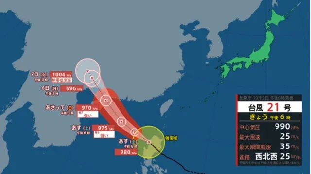 Bão số 21 dự kiến sẽ suy yếu thành áp thấp nhiệt đới vào ngày 7 tháng 10