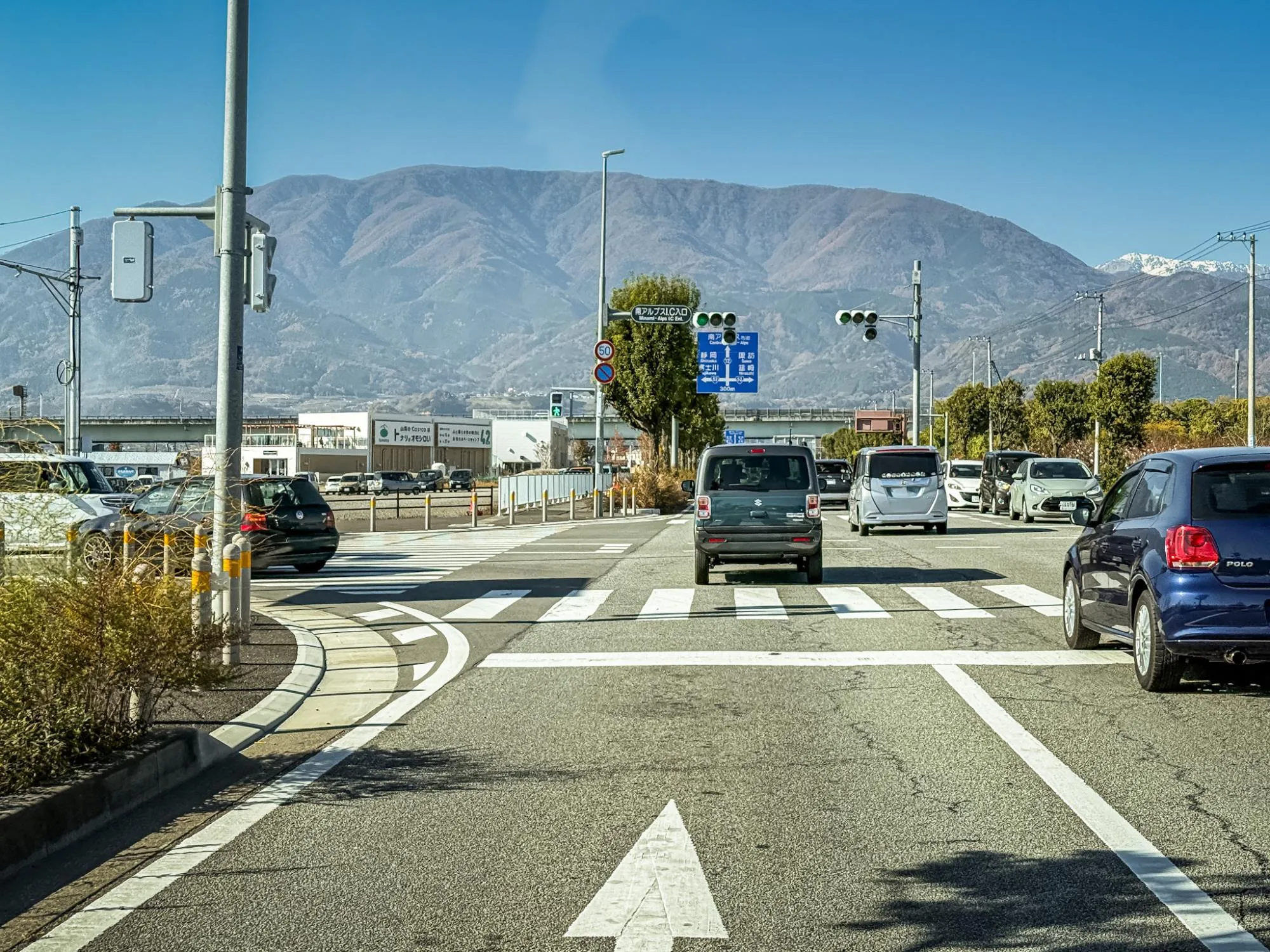 Đi vào phía fumotto Minami Alps tại ngã tư lối vào đường cao tốc Minami Alps trên Quốc lộ 12 (trong ảnh là rẽ trái)