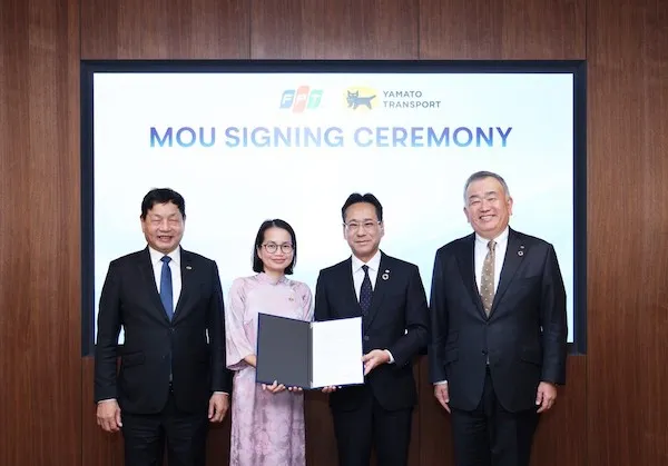 Lễ ký kết Thỏa thuận hợp tác cơ bản (Từ trái sang: Ông Trương Gia Bình, Người sáng lập kiêm Chủ tịch HĐQT FPT; Bà Phan Thị Thanh Hòa, Thành viên HĐQT, Giám đốc điều hành kiêm Giám đốc vận hành FPT Japan; Ông Tamaki Abe, Giám đốc điều hành cấp cao, phụ trách mảng kinh doanh vận tải của Yamato Transport; Ông Yutaka Nagao, Chủ tịch Yamato HD).