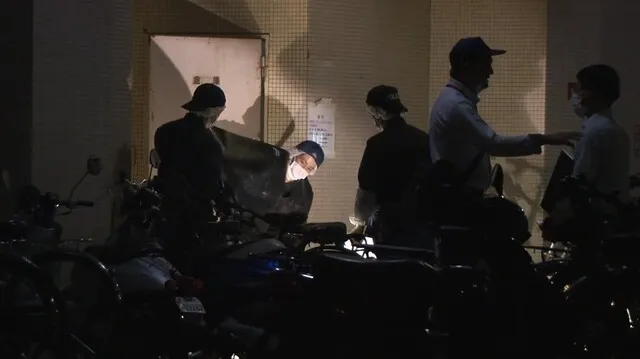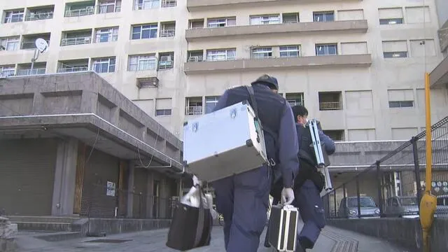 Điều tra viên cảnh sát tỉnh Hiroshima vào căn hộ tại hiện trường (10h25 sáng ngày 16, Nishi-ku, Hiroshima)