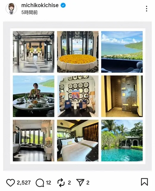 Nữ diễn viên Yoshise Michiko (50 tuổi) đã cập nhật Instagram cá nhân vào ngày 17, thông báo về kỳ nghỉ dưỡng thư thái của mình tại khu nghỉ dưỡng Đà Nẵng, Việt Nam.